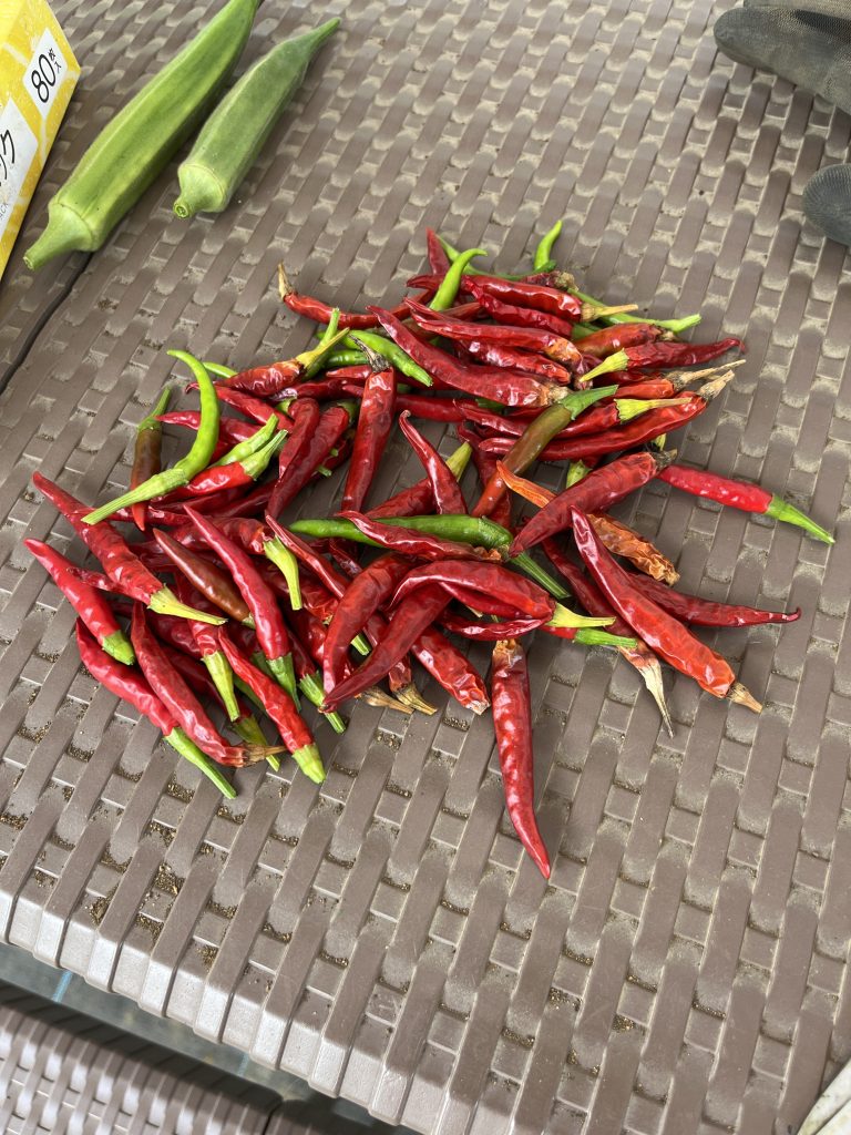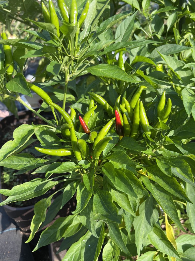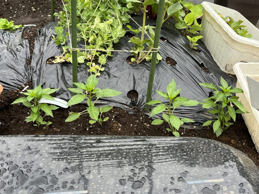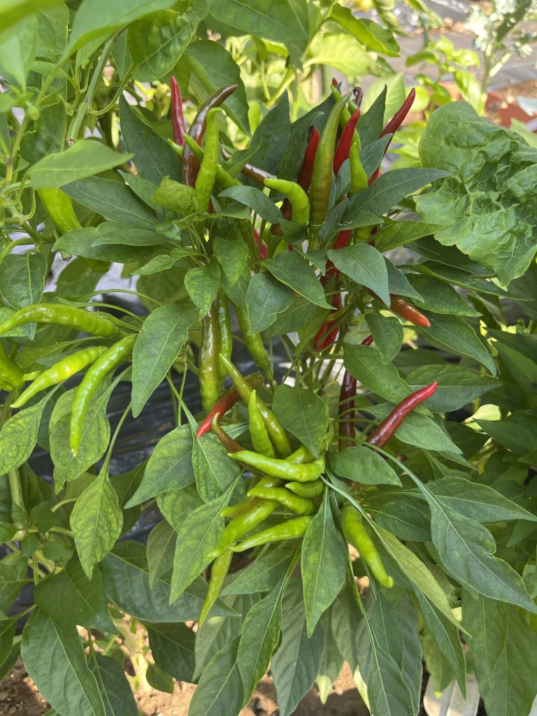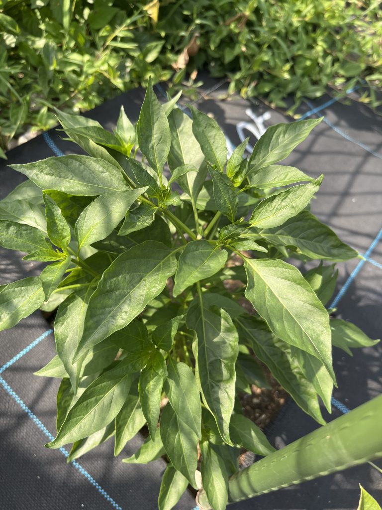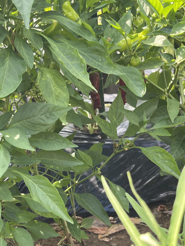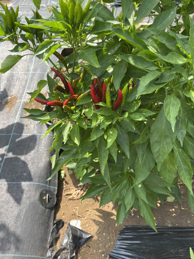 202406 今年最初のしし唐が収穫できました。唐辛子も株式会社アグリメディア様からお借りしているパートナー活動の苗の方も元気に育っております。