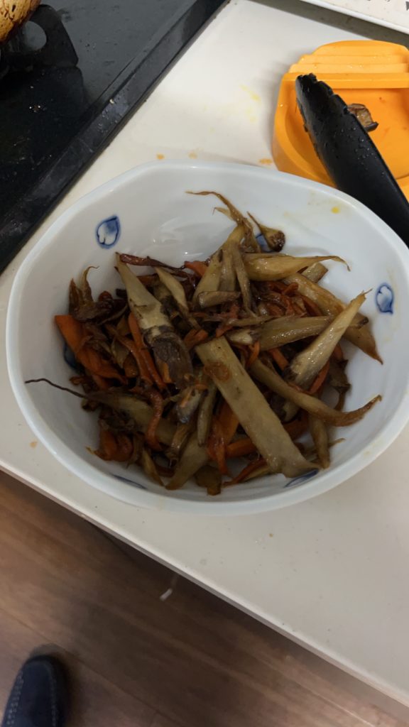 20240624 牛蒡(湛慶牛蒡)収穫出来ました。大きな牛蒡になり、早速きんぴらに致しました。ご購入お待ちしております。