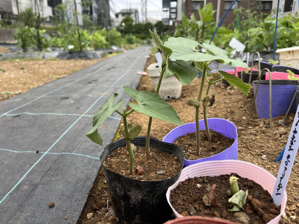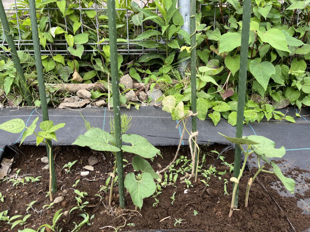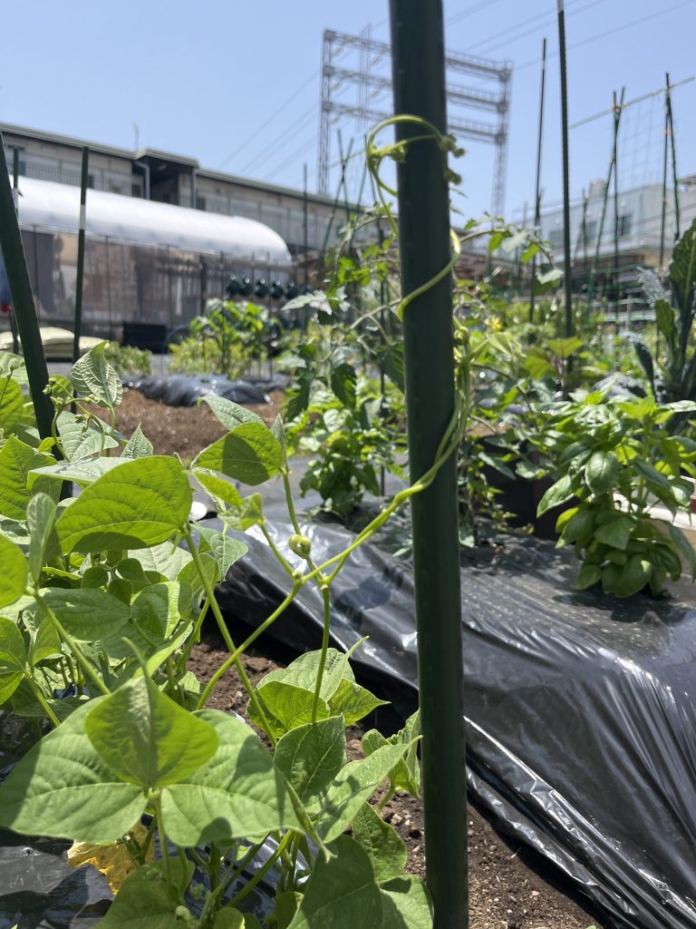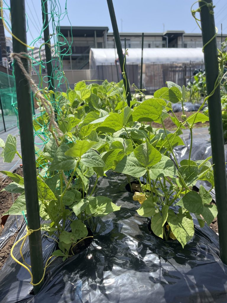 20240627 インゲンの実が早く見たい。昨年のインゲンは実が1センチくらいの非常に小さい食べられないようなサイズでした。今年はプロの佐渡島プロ農家がばっくにいるので期待しつつ、早くベーコン巻きが食いたい。ぜひ、東京都大田区雪が谷大塚・大森のシェア畑へお越しください。