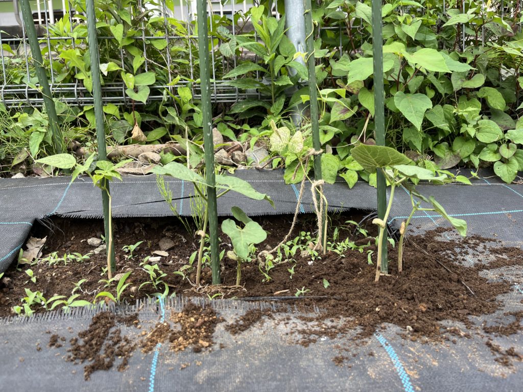 20241125 おふくろ大根の跡地、結局芽が出てアブラムシの被害にあやめっ娘大根の跡地にソラマメとモロッコインゲンを植えます。ソラマメは既に種子を植えており、発芽待ちです。